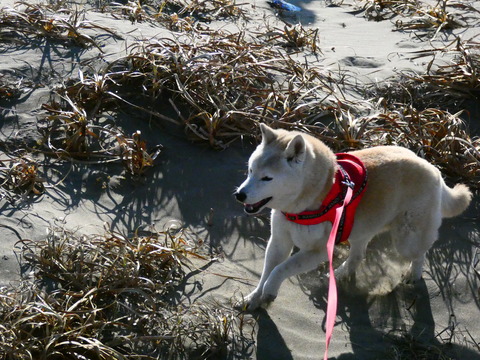 春だぁ~ ♪今朝もポカポカ陽気の九十九里浜。マリンは、とってもご機嫌デス ?    ···