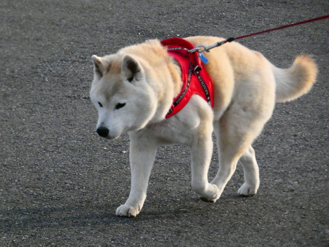 おはようございます〜術後、左目を掻くのでエリカラをしてますが短足犬ゆえに地面に・・・